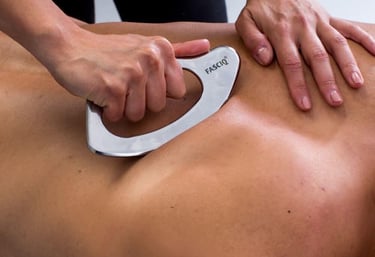 Scraping is een techniek in sportmassage waarbij een speciaal instrument over de huid wordt geruikt om spierpijn en spanning te verlichten door het stimuleren van doorbloeding en weefselherstel.